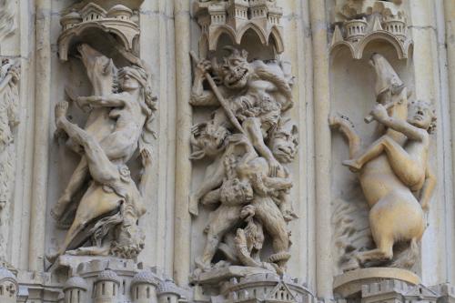 表向きはキリスト教の神に従うようになった異教の神々と説明されるが、それに反感を持つ神学者もいた。シトー会の神学者ベルナールはゴシックの怪物像に怒りを表明している。