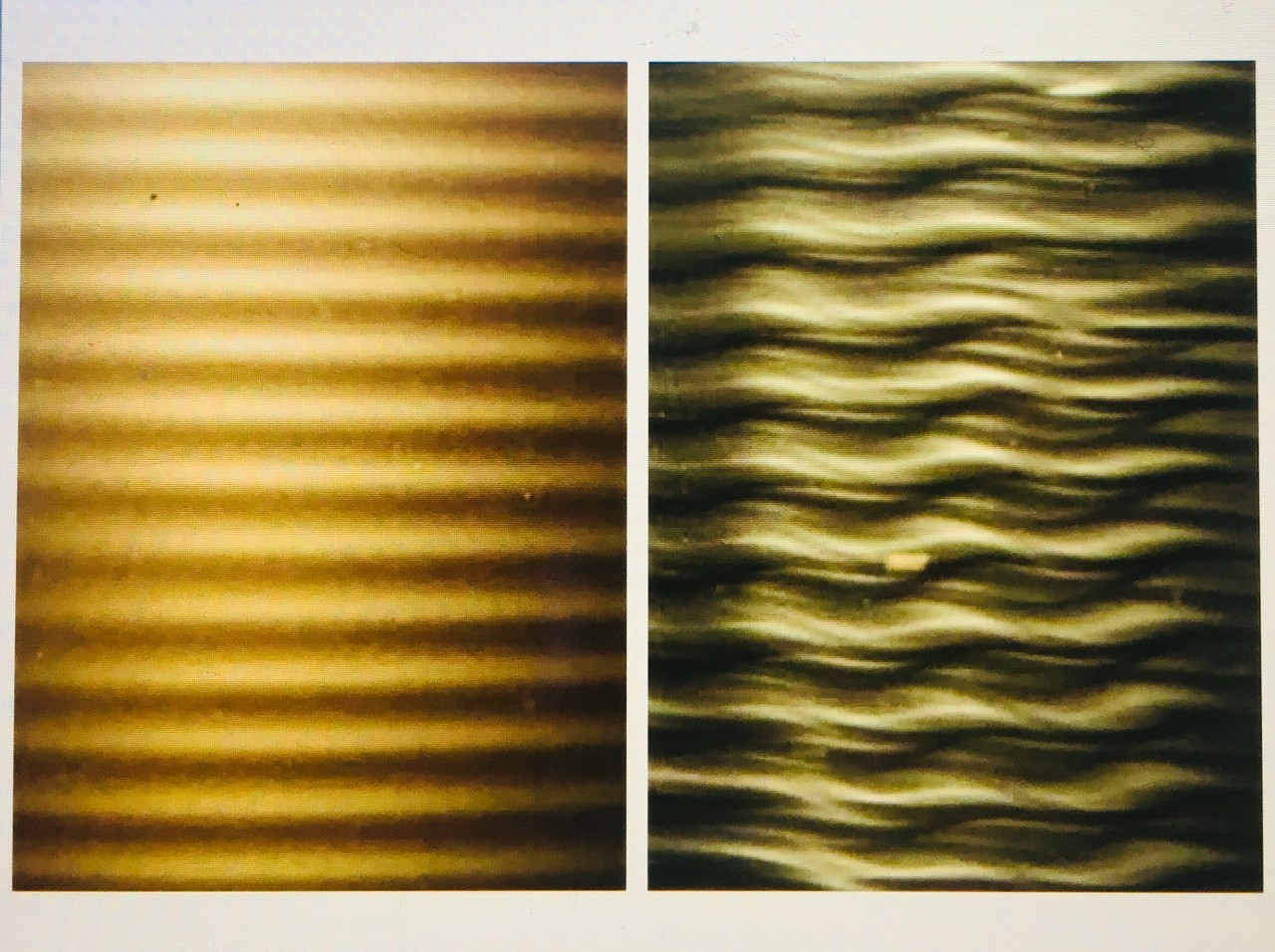 円筒の回転が速くなるにつれレイノルズ数は大きくなり、水は層流(左)から乱流(右)へ変化する。