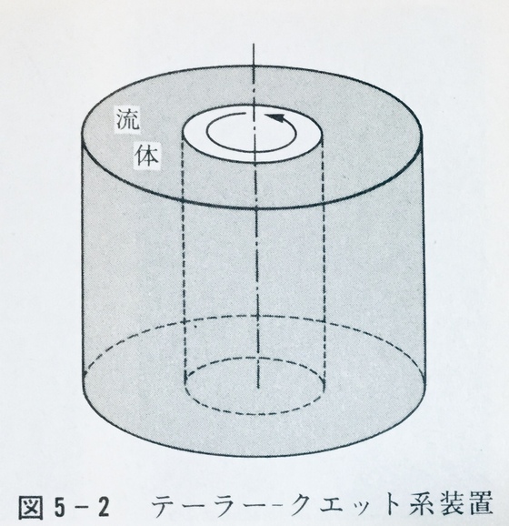 層流から乱流に変化する様子を理論化するため、「テーラー・クエット系」と呼ばれる下の様な装置が考案された。