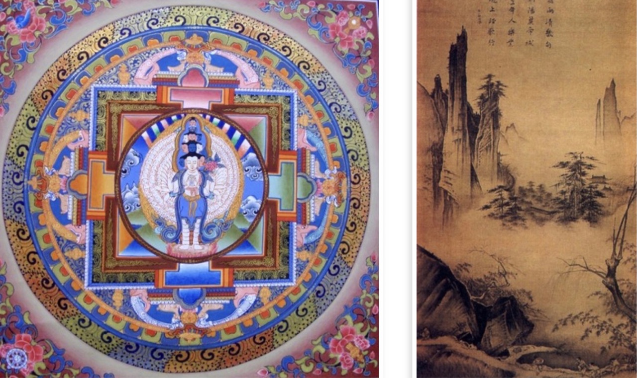 タントラの心象風景は曼荼羅に、禅宗のそれは山水画、特に馬遠の山水画に典型的に現れている。