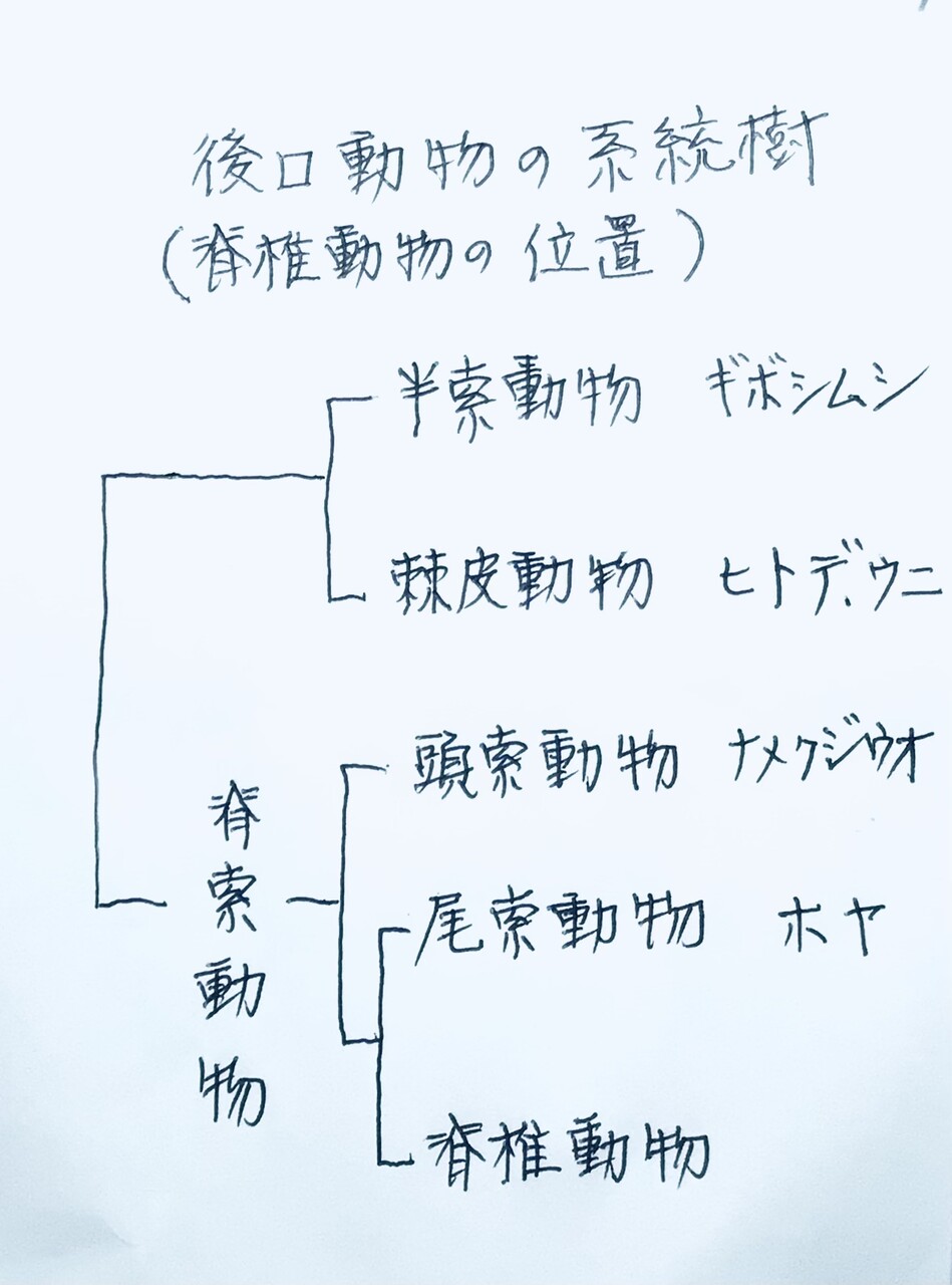 また(まだ異論もあるが)脊椎動物はナメクジウオよりホヤの仲間に近い事も分かった。脊索動物周辺の略式系統樹も示しておく。