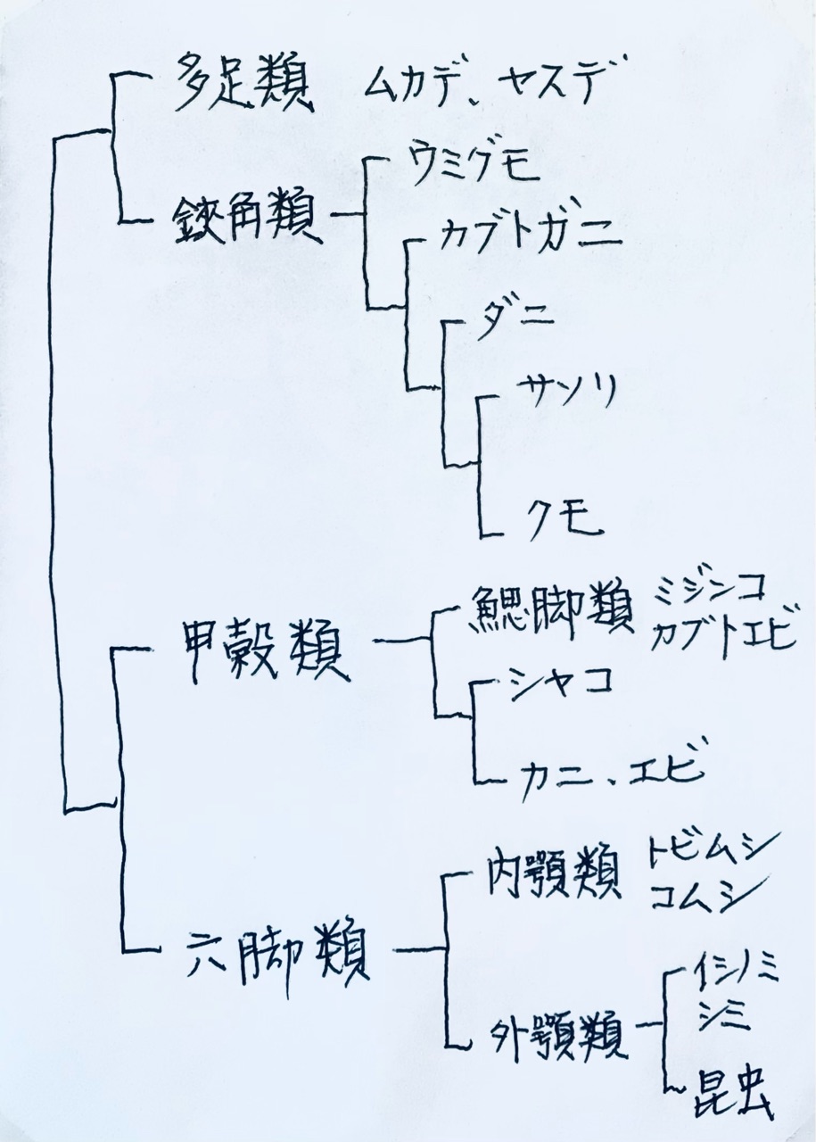 分子系統学によると、昆虫はムカデなどの多足類よりもエビ、カニなどの甲殻類と近縁である事がハッキリしたそうである。http