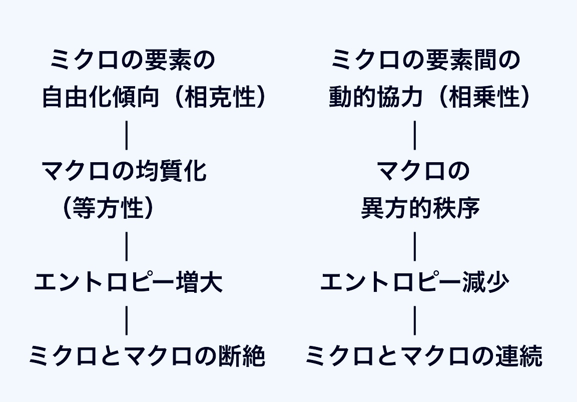 ② ゲマインシャフトよりゲゼルシャフトの方がエントロピーは減少する。